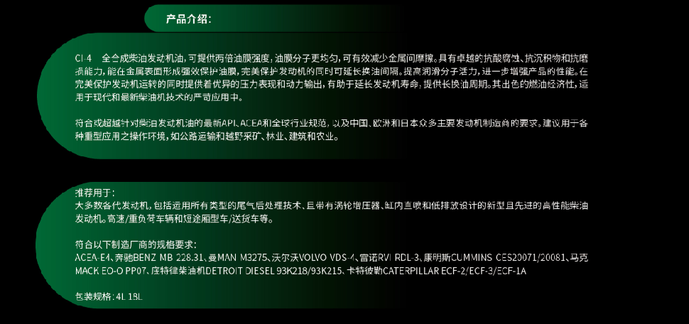 | 上一條:T6 15W-40 20W-50 CH-4全合成柴油發(fā)動機油 | 下一條:出租車專用燃氣發(fā)動機油K3 |